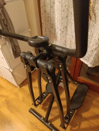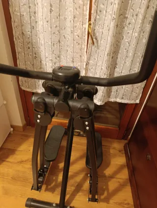 Attrezzo per allenamento domestico. - Struttura in metallo nero. - Manubri con impugnature. - Pedali antiscivolo.