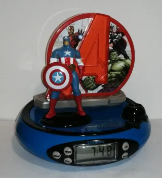 Radiosveglia originale Marvel Avengers con Capitan America. - Personaggio di Capitan America in primo piano. - Decorazione con logo Avengers e altri eroi. Perfetta in estetica e funzionamento, incluso batterie Multifunzioni.... Luce notturna, Radio Orologio Rumori del personaggio premendolo alla base Sveglia Proiettore dell'ora sulla parete Da collezione e da arredo Contattatemi se interessati per info e chiarimenti