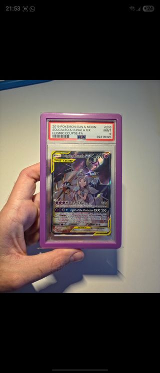 Carta Pokémon Solgaleo e Lunala Tag Team GX, certificata PSA 9. - Edizione italiana. - Grado di valutazione: 9. Solgaleo & Lunala GX 216/236 SM Eclissi Cosmica M- NM - Pokemon TCG PSA 9