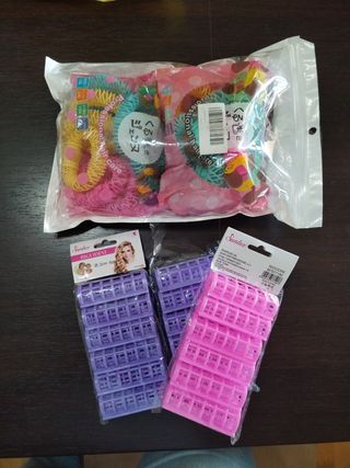 Set di accessori per capelli - Strumento per creare acconciature. - Elastici per capelli con decorazioni. - Elastici colorati. - Accessorio per chignon.