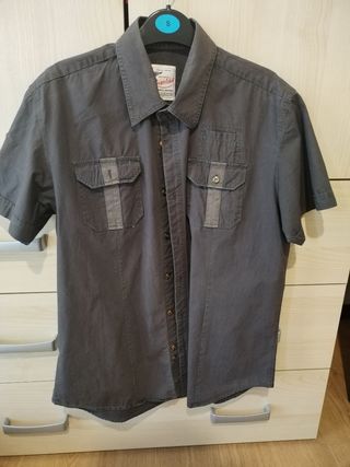 Camicia da uomo a maniche corte. - Due tasche sul petto con chiusura a bottone. - Chiusura frontale con bottoni. - Collo classico.