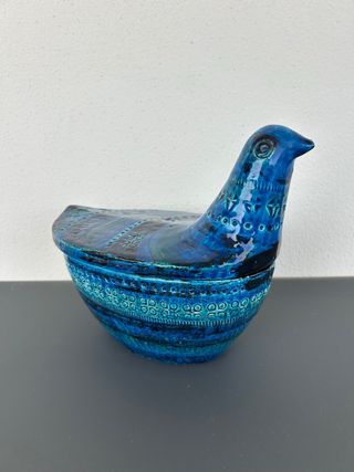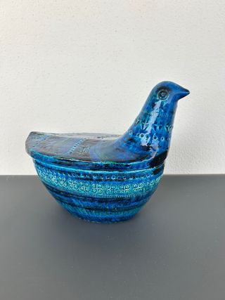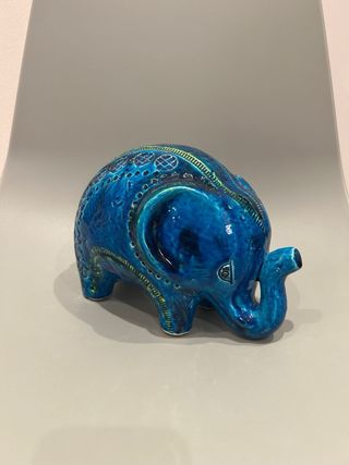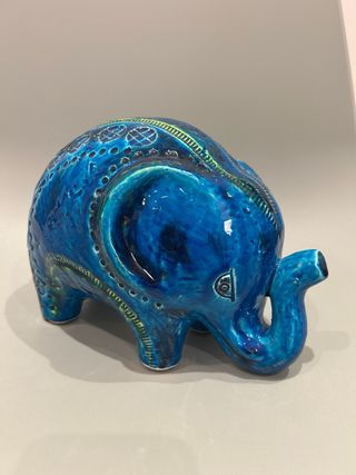 Aninake a forma di elefante disegnato da Aldo Londi per Bitossi ceramiche negli anni 70 in Italia. Ceramica terracotta smaltata a mano con decoro rimini blu. Forma realizzata a colaggio in terra bianca serie Rimini Blu. Decoro eseguito con incisione manuale a stampino con motivi diversi sotto cristallina azzurra brillante. Dimensioni: lunghezza 22 cm e altezza 16 cm circa. Ottime condizioni