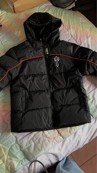 Giubbotto Trapstar nero con dettagli arancioni. - Logo Trapstar bianco sul petto. - Cappuccio. - Zip frontale.