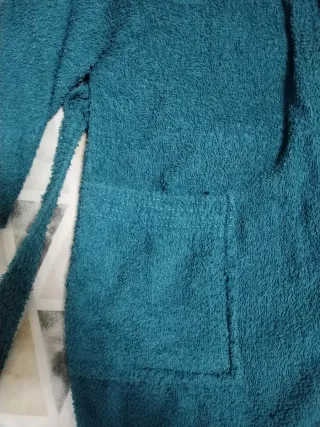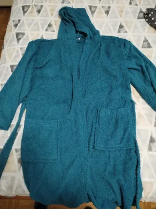 Morbido accappatoio tg M con cappuccio, perfetto per rilassarsi. - Tessuto soffice e confortevole. - Due tasche frontali. - Cintura per chiusura.