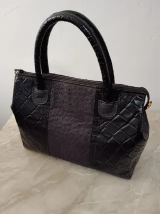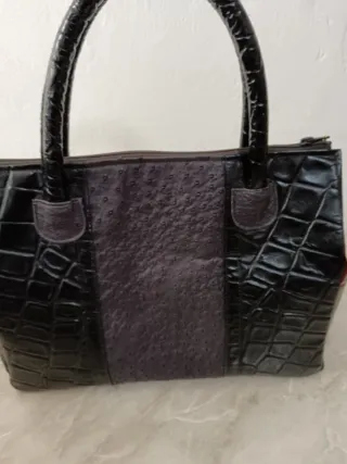 Borsa in vera pelle, un accessorio elegante e di alta qualità. - Design unico con inserto in pelle effetto cavallino. - Manici in pelle nera lucida. - Dettagli in pelle grigia. - Finitura lucida effetto coccodrillo sui lati.