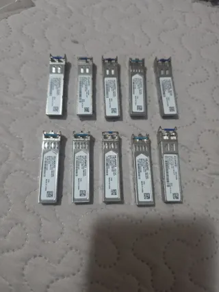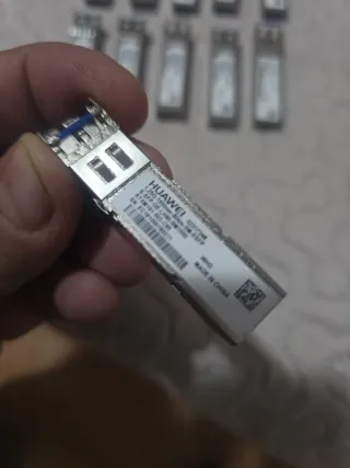 Lotto di 10 moduli SFP Huawei per cavi ottici. - Moduli SFP per connessioni in fibra ottica. - Compatibili con apparecchiature di rete. - Realizzati in metallo.