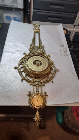Bellissimo barometro antico realizzato in ottone, con una cornice decorata. Non funzionante solo collezionismo - Struttura in ottone. - Cornice ornamentale.