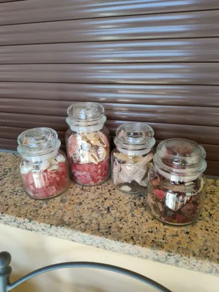 Set di contenitori in vetro Yankee Candle, perfetti per conservare piccoli oggetti o come decorazione. - Realizzati in vetro trasparente. - Dettagli colorati sul vaso. - Include decorazioni interne in pietra.