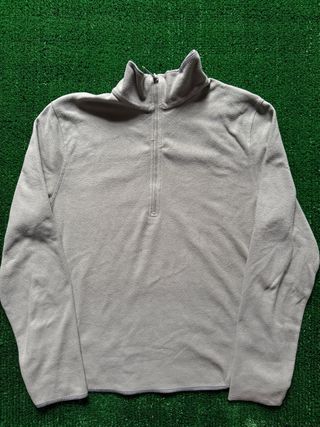 Maglia termica da trekking in pile, colore grigio-verde. - Taglia M. - Zip frontale parziale.
