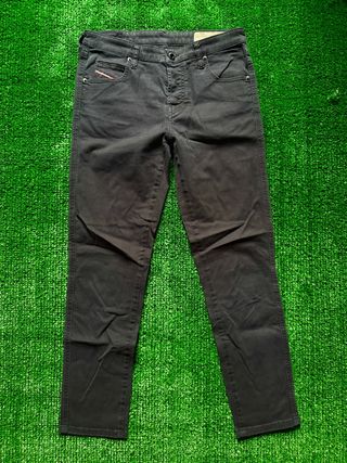Jeans Diesel original in taglio slim fit, colore nero. - Vestibilità slim. - Chiusura con zip e bottone. - Tasche frontali e posteriori. - Dettaglio logo sulla tasca. - Tessuto denim resistente.