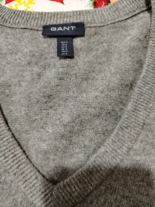 Maglione GANT con scollo a V, nuovo. - Taglia: M - Colore: Grigio mélange - Logo GANT ricamato sul petto