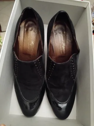 Eleganti scarpe in camoscio e vernice. - Materiale: camoscio e vernice. - Dettagli con borchie. - Punta affusolata.