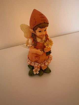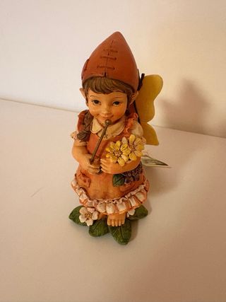 Deliziosa statuetta di fata, perfetta per collezionisti. “fata di Maggio” - Dettagli curati e colorati. - Realizzata in resina. - Include una piccola bacchetta magica e fiori.