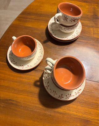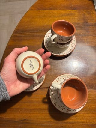 Elegante set di 5 tazzine da caffè con piattini, perfette per ogni occasione. - Decorazione floreale marrone. - Manici comodi e funzionali. - Piattini inclusi