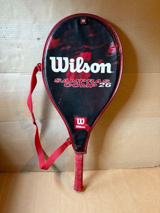Racchetta da tennis Wilson Sampras Comp 26 con custodia. Vintage. Impugnatura usurata, come da foto. - Racchetta da tennis Wilson. - Modello Sampras Comp 26. - Custodia Wilson inclusa.
