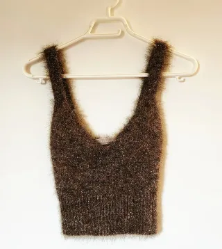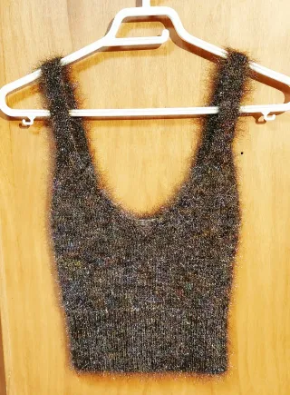 Gilet corto con un design scintillante e un tocco di colore. Perfetto per aggiungere un tocco di luce al tuo outfit. Made in Italy di Franca Pierpaoli - Tessuto morbido e peloso. - Spalline sottili. - Scollo a V.