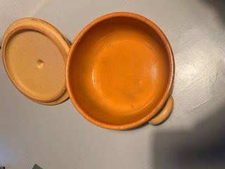 Pentola in terracotta dal colore caldo, perfetta per la tua cucina. - 25 X 9 centimetri - Coperchio con pomello. - Manici laterali. Perfetta per cucinare ragù o sughi che necessitano di una lunga cottura anche tre o quattro ore a fuoco basso non si bruciano mai. Mantiene il sapore delle materie prime in modo perfetto! Prima della spedizione verrà lavata e sterilizzata