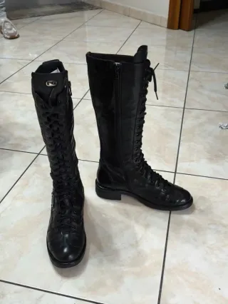 Eleganti stivali alti da donna in vera pelle. - Materiale esterno: vera pelle - Materiale interno: pelle - Chiusura con lacci