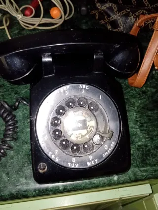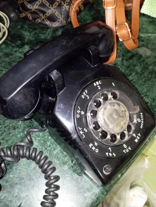 Un classico telefono fisso con combinatore a disco. Un pezzo di arredamento che richiama un'epoca passata. - Colore nero. - Design vintage. - Combinatore a disco funzionante.