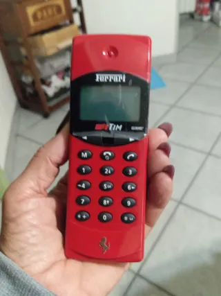 Telefono cellulare Ferrari TIM GPRS. - Design sportivo e iconico. - Colore rosso acceso. - Logo Ferrari sul retro.
