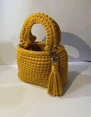 Borsa in lycra con un grazioso manico e un dettaglio a nappa. - Materiale: Lycra - Colore: Giallo - Dettaglio: Nappa
