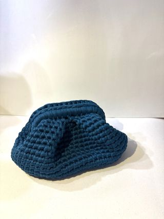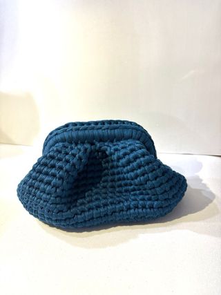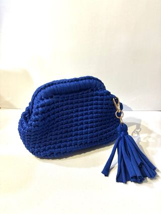 Elegante pochette realizzata all'uncinetto, perfetta per completare il tuo look. - Colore blu vivace - Dettaglio nappa decorativa - Chiusura con moschettone dorato