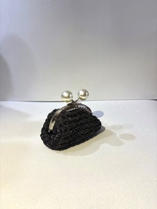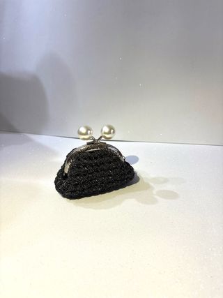 Elegante portamonete in organza nera, perfetto per completare un look. - Decorato con due perle. - Chiusura a scatto metallica.