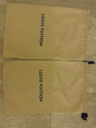 Due sacchetti originali Louis Vuitton, ideali per proteggere le scarpe. - Colore beige. - Logo Louis Vuitton stampato. - Chiusura con laccetto.