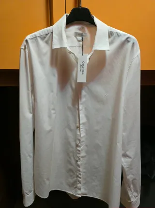 Camicia da uomo Calvin Klein, modello a maniche lunghe. - Tessuto in cotone. - Chiusura con bottoni. - Logo ricamato sul petto.
