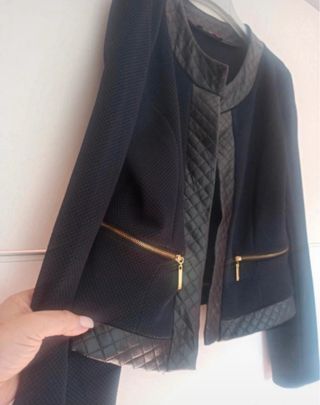 Elegante giacca leggera, un classico intramontabile Made in Italy. Nuova senza cartellino. - Dettagli in ecopelle trapuntata. - Zip dorate decorative sulle tasche. - Scollo rotondo. Taglia S colore blu scuro e rifiniture nere . Modello con taschini a chiusura davanti e aperta. Taglia 15 che corrisponde ad una taglia IT 38/40 S/come nuova #primaveriledonna #donnanuovosenzacartellino #ester #pasqua #girl #femme #madeinfrance #giaccadonnavintage #donnasm #madeinitaly #donnamadeinitaly #spedizioneveloce #france #austria #lituania #canada #paesibassi #inghilterra #italia