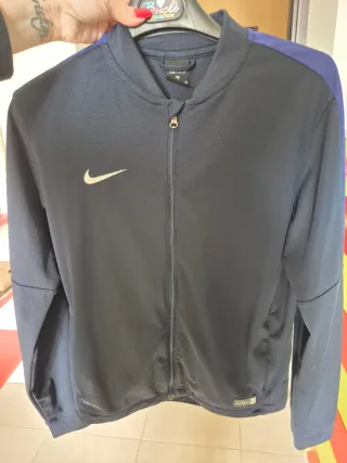 Giacca sportiva Nike in tessuto Dri-Fit, ideale per l'allenamento. - Colore blu scuro con dettagli blu. Indossata poche volte. Taglia 13 15 anni