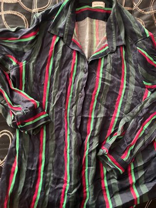 Camicetta a maniche lunghe con un design a righe verticali. - Fantasia a righe multicolore. - Colletto classico. - Chiusura frontale con bottoni. Camicetta firmata Seidensticker donna poliestere elastane a righe fondo nero . Taglia 38 S elasticizzata. #camicia #t-shirt #righe #spring #manichelunghe donna38 #donnas #camiciaseidensticker #femme #classic #top #girl #affare