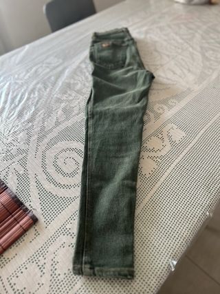 Jeans skinny vita alta. - Colore verde oliva. - Design classico a cinque tasche.