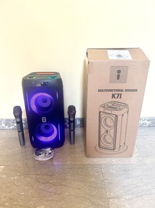 Macchina per karaoke per adulti, altoparlante Bluetooth portatile con 2 microfoni wireless, sistema PA con luci da discoteca per grandi feste, all'aperto, supporta USB/TF/REC/AUX. Prodotto nuovo aperto solo per fare foto. Solo interessati no perditempo e ne offerte assurde.