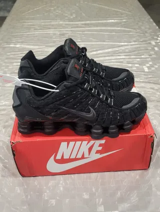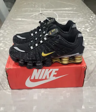 Bellissime Scarpe Nike Shox TL in colore nero e oro. - Design iconico con unità Shox. - Tomaia in mesh traspirante. - Dettagli dorati a contrasto. - Vendo perche ho acquistato il numero sbagliato