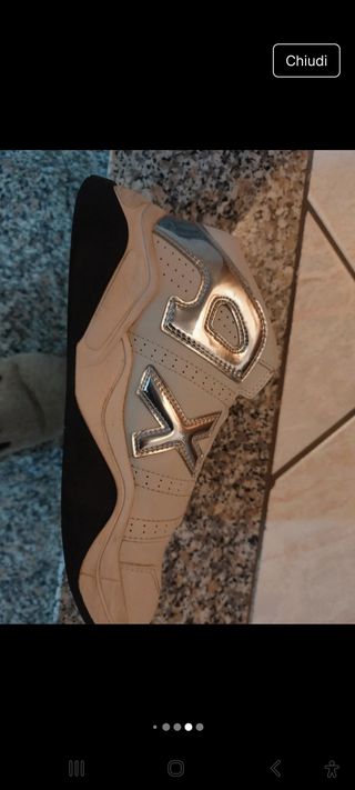 Vendo un paio di scarpe sportive Armani Exchange. Sono in ottime condizioni e presentano un design elegante e moderno. - Modello: sneakers alte - Colore: bianco e argento - Materiale: pelle e tessuto