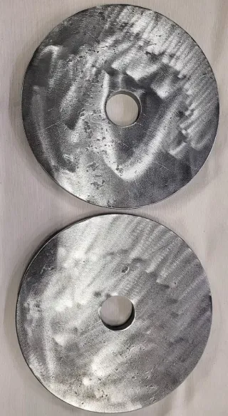 Set di due dischi da palestra in metallo. - Diametro foro: 50 mm - Peso per disco: 10 kg