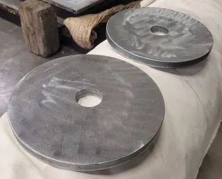 Vendo dischi palestra olimpionici look solido e compatto con foro 50 mm o 28 mm in Acciaio. Qui di seguito ecco l' elenco di disponibilità. - Disco da 20kg con maniglie diametro 450 mm, come in foto: 65 euro - Disco da 20 kg: 52 euro - Disco da 10 kg: 27 euro - Disco da 5 kg: 17 euro - Disco da 2,5 kg: 11 euro Per ordini di minimo 50 kg complessivi possibilità di spedizione in tutta Italia. Possibilità di ritiro anche a mano in zona Bergamo.