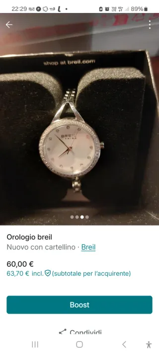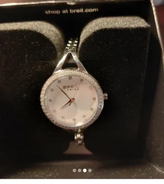 Elegante orologio Breil da donna, nuovo con cartellino. - Quadrante bianco con indici a cristalli. - Lunetta impreziosita da cristalli. - Cinturino in acciaio.