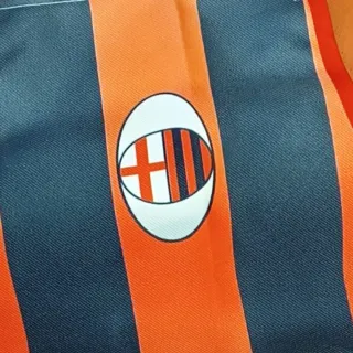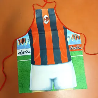 Grembiule da cucina con design ispirato alla maglia dell'AC Milan. - Strisce verticali rosse e nere. - Dettagli che richiamano il campo da calcio e i tifosi.
