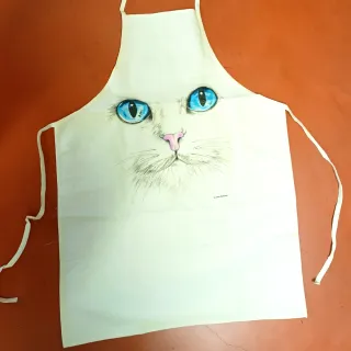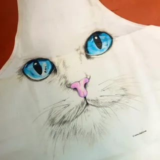 Grembiule con una simpatica stampa di un gatto dagli occhi azzurri. - Stampa dettagliata del muso di un gatto. - Design unico e originale.