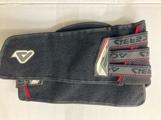 Paraschiena per moto marca Acerbis, con un design moderno e protettivo. - Struttura in carbonio e plastica. - Inserti in rete rossa. - Cinghie elastiche regolabili con logo Acerbis.