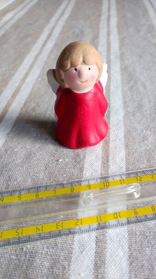 Angioletto in ceramica rosso e beige.