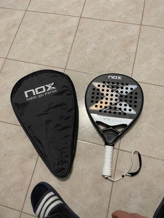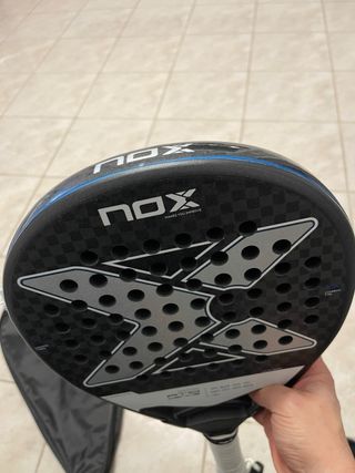 Pala de pádel NOX Tapia 12K, ideal para jugadores que buscan mejorar su juego. Incluye funda. - Pala de pádel NOX. - Modelo Tapia 12K. - Funda protectora incluida. Usata qualche volta nessun graffio