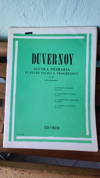 Duvernoy - Scuola primaria 25 studi facili e progressivi per pianoforte Op. 176 Ricordi E.R. 642 Tenuto benissimo - Segno di pennarello in copertina e qualche segno a matita/biro internamente. Vedere foto. Raccolta di studi per pianoforte di Duvernoy, Op. 176. - 25 studi facili e progressivi. - Edizione per pianoforte.