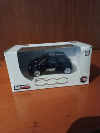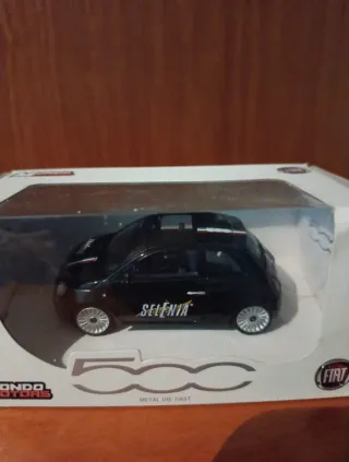Modellino in metallo Metal Die Cast della Fiat 500. - Colore nero. - Dettaglio Selenia sulla fiancata. - Ruote in lega. - Confezione originale inclusa.
