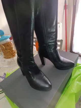 Eleganti stivali in pelle. - Tacco alto e plateau. - Zip laterale per una facile calzata. - Design classico e versatile. messi una sola volta vendiamo per inutilizzo pagati 175
