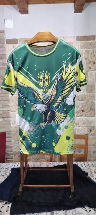 Maglietta con un design unico e accattivante. Taglia M nuova mai utilizzata - Stampa di un'aquila in volo. - Logo CBF Brasile sul petto. - Dettagli grafici a spruzzo.