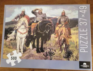 Puzzle originale da 500 pezzi, prodotto in Russia. - Raffigura un'opera d'arte con cavalieri di un famoso pittore Russo - comprato a Mosca, nuovo mai usato