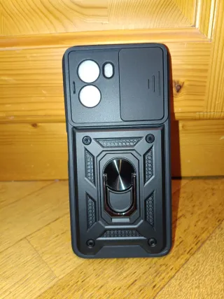 Custodia protettiva robusta per Xiaomi Poco M7, colore nero. Dotata di anello rotante per presa sicura e funzione supporto, oltre a copri-obiettivo scorrevole per proteggere la fotocamera. Perfetta per chi cerca resistenza e funzionalità. nuova mai usata